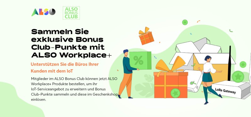 Die ALSO Workplace+ Devices nutzen vorkonfigurierte LoRaWAN-Konnektivität zur nahtlosen Integration mit der ALSO IoT-Plattform und ermöglichen so einen reibungslosen Rollout. Nach Einrichtung der ALSO IoT-Plattform können Ihre Kunden sofort anfangen, Daten über die ALSO IoT-Plattform und ihre Vielzahl an einsatzbereiten Anwendungen zu visualisieren.