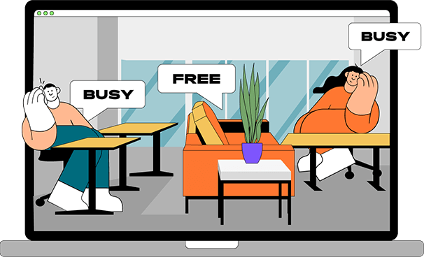 Überwachen Sie den Belegstatus von Schreibtischen und Besprechungsräumen, um sicherzustellen, dass Büromitarbeiter genügend Abstand halten.