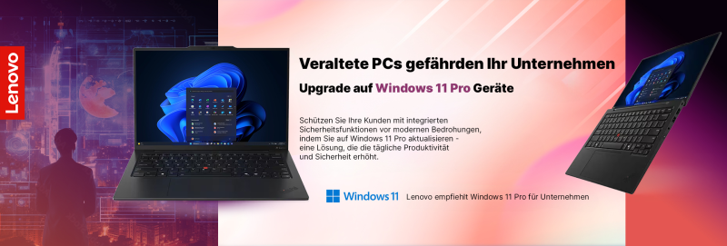 Rüsten Sie die Geräte Ihrer Kunden auf Lenovo ThinkPad mit Windows 11 Pro auf – und seien Sie bereit für die Zukunft.